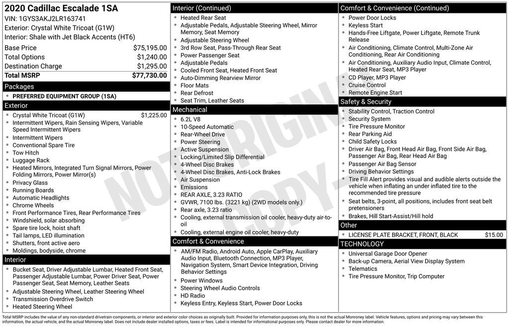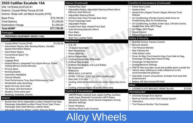 2020 Cadillac Escalade Crystal White Tricoat RWD 10-Speed Automatic with Overdrive 6.2L V8