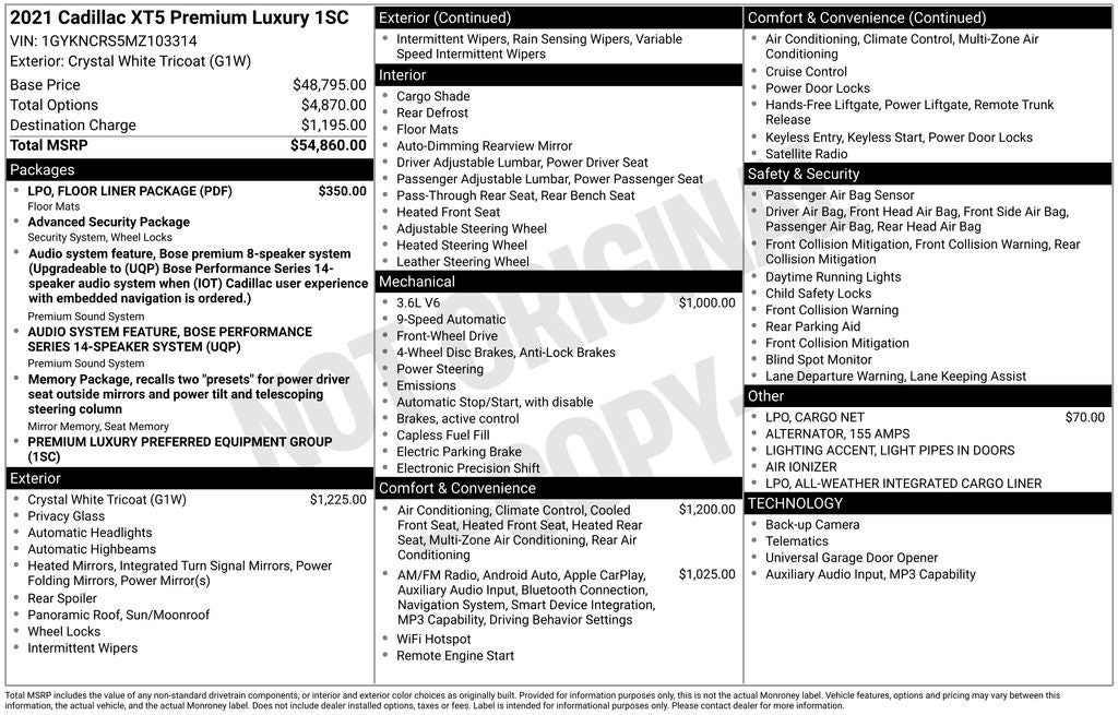 - Vehicle Name: Cadillac XT5