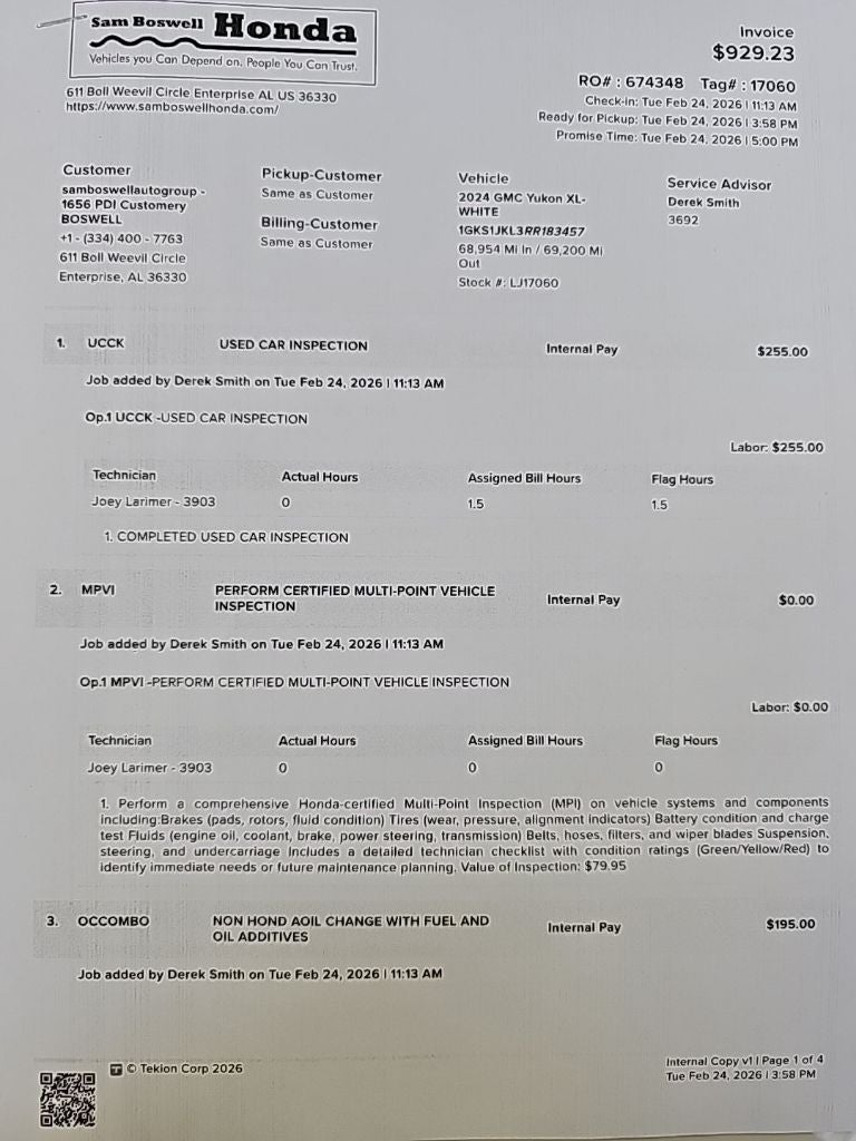 Inside, the 2024 GMC Yukon XL Denali features a luxurious cabin with premium leather seating, heated and ventilated front seats, a power-adjustable driver’s seat, a large touchscreen infotainment system with navigation, Apple CarPlay, Android Auto, and Bluetooth® connectivity. Spacious second- and third-row seating, expansive cargo capacity, and advanced entertainment options make it ideal for long road trips and daily driving alike. Visit Sam Boswell Honda today to test drive the 2024 GMC Yukon XL Denali and experience a full-size SUV that combines power, technology, and first-class comfort ⭐🚘